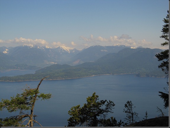 After about an hour or so of climbing we reach our first viewpoint. Lovely clear views to the West of Keats Island in the foreground with the Sunshine Coast and the town of Gibsons beyond.